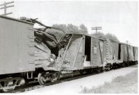 Left to Right: Photos of the wreck train returning from the Delphi wreck at Monon, Indiana..