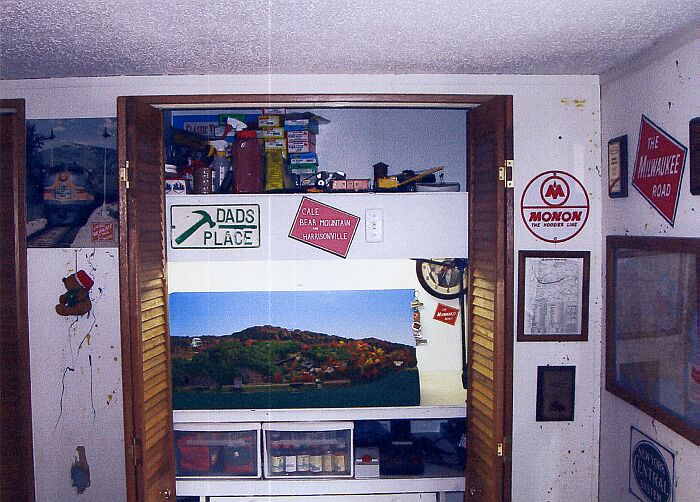 Z scale layout. The 2' x 3' layout fits inside one of his closets.