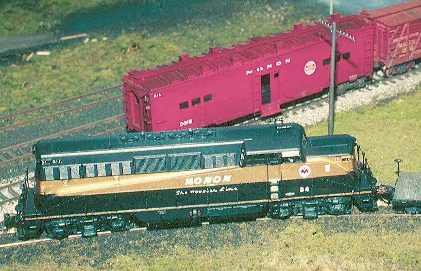 scale by Kevin Heggi. F3 A-B's custom painted by Kevin. Right: Monon