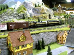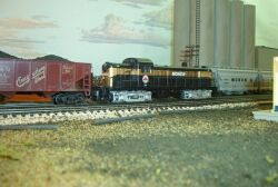 model railroad club I belong to in Queensland, Australia. The layout is largely Australian themed, there are spearate sections that have been built and scenicked for U.S., European and British modelers. The club's exhibition layout has the theme of "Uniting Nations." I am the only Monon fan in the club, but all our members are now aware of The Hoosier Line! The passenger shot was taken on the U.S. section, which occupies one side of the layout. -Warren Dibbs, Queensland, Australia-