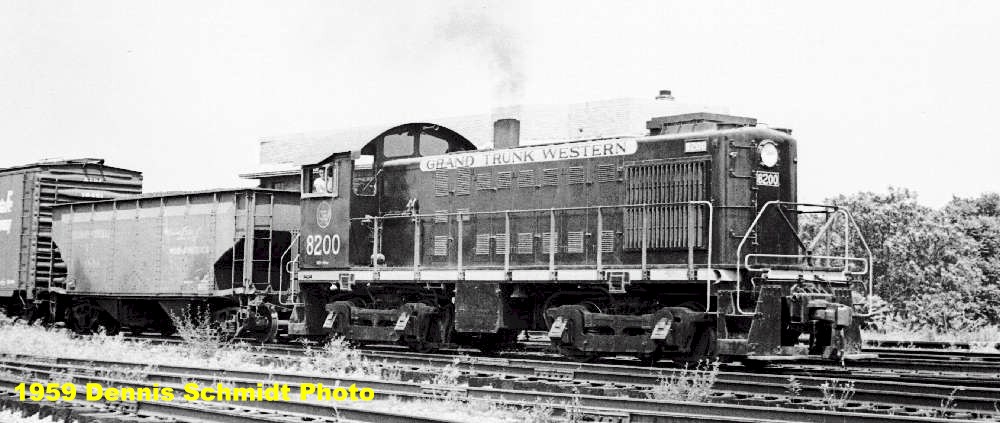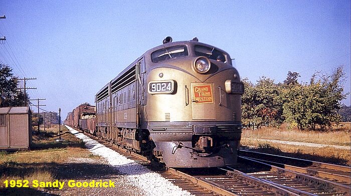 Left: April 14, 1959. SW2 8200 passing the tower, downtown South Bend. Right: August 10, 1963. F unit 9017 leads GTW freight through Oliver yards on the westside of South Bend.