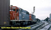 More great action shot along the Grand Trunk Western in South Bend, courtesy of George Elwood's Fallen Flags Web Site. Left: Westbound freight approaching Union Depot in December of 1979. Right: Westbound freight passing by the Studebaker Plant. Note overhead conveyor system still there on Studebaker Building #84.