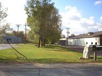 Left: Industrial spur. This spur, curving off to the left, once serviced the Drewrys, formerly Muessel Brewery, on Elwood Street. The main continues south, crossing Lincolnway West. Right: November 2003. Wilbur Street, looking south at what was once the NYC line. Crossings have been paved over.