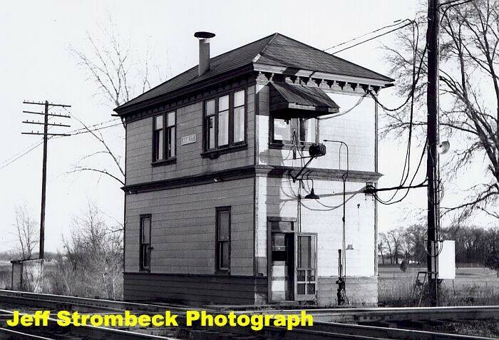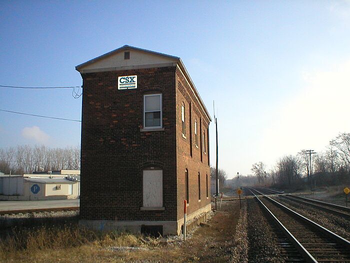 More pictures from Walkerton. Left: Looking to the southwest along the Kankakee Belt. Tracks in the foreground are the Norfolk and Western, those in the distance, the former Baltimore and Ohio, currently CSX. While taking pictures, two CSX freights came through town. Right: Tower at Walkerton. Does not look active.